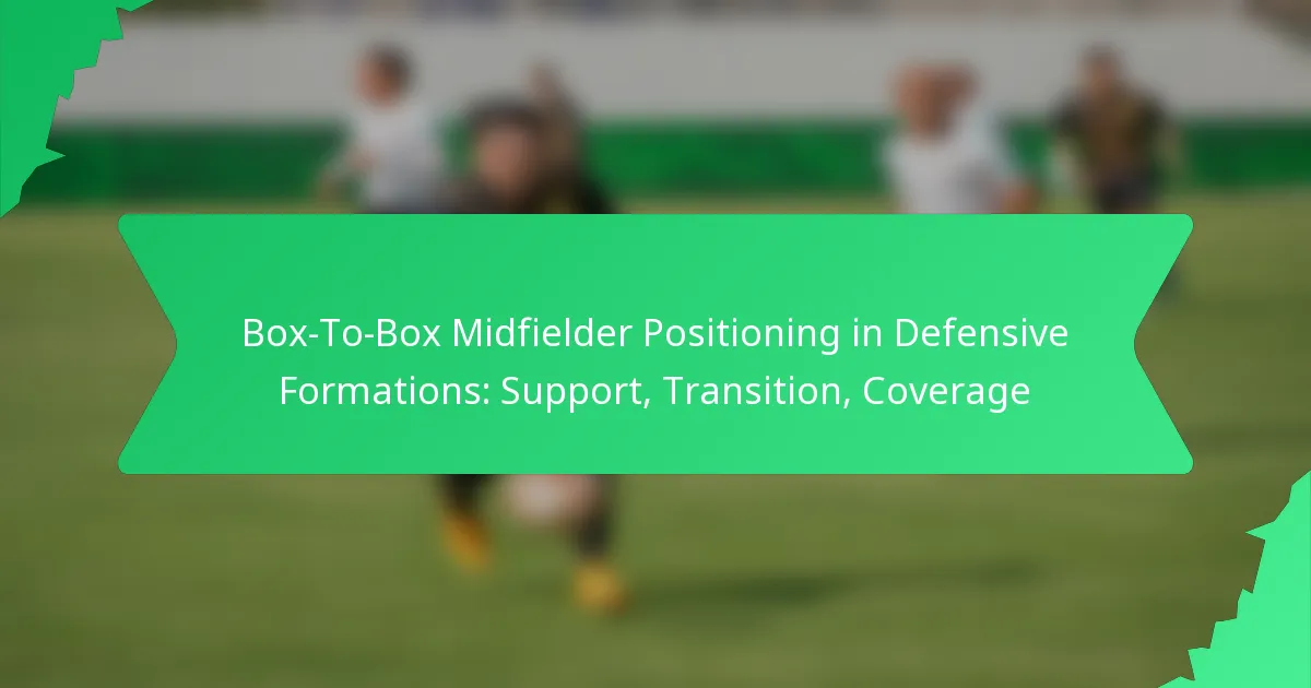 A box-to-box midfielder plays a crucial role in supporting defensive formations by providing coverage, engaging in tackles, and facilitating transitions between defense and attack. Their positioning and awareness help to block passing lanes and track back to assist defenders, ensuring a cohesive unit on the field.
