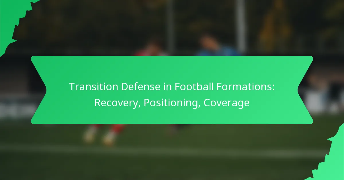 Transition defense in football formations is essential for swiftly regaining defensive organization after a turnover. This strategy emphasizes recovery, positioning, and coverage to minimize scoring opportunities for opponents during critical moments. By quickly repositioning and communicating, teams can effectively counter attacks and maintain defensive integrity.